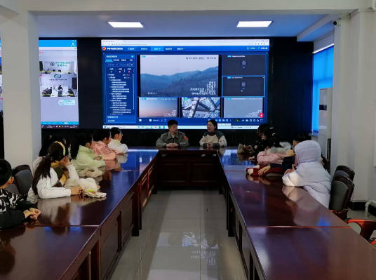 第一站观摩应急指挥大厅,应急管理工作人员向师生和家长们展示了高山铁塔视频监测系统以及智慧应急平台指挥调度等高科技装备,讲解如何用数字化手段开展应急指挥与救援工作,遇森林火灾逃生技巧和正确报警方法,带给大家最直观最震撼的感受。学生们轮流坐在应急指挥操作系统前体验,当家乡广袤的森林、秀丽的山川河流,严阵以待的救援队伍、整齐列装的救援物资储备、随时为灾时敞开的应急避难场所等全天候监测画面出现在大屏幕上时,同学们纷纷露出新鲜、好奇的表情,不由自主发出赞叹声。