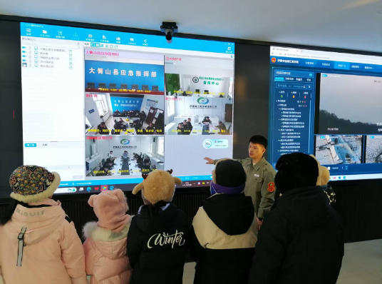 1月13日上午,黑龙江省大箐山县应急管理局开展了“应急基地开放日”活动,来自带岭小学的师生和家长们走进应急指挥大厅,深入消防备勤区域感受应急工作,“身临其境”体验安全知识。