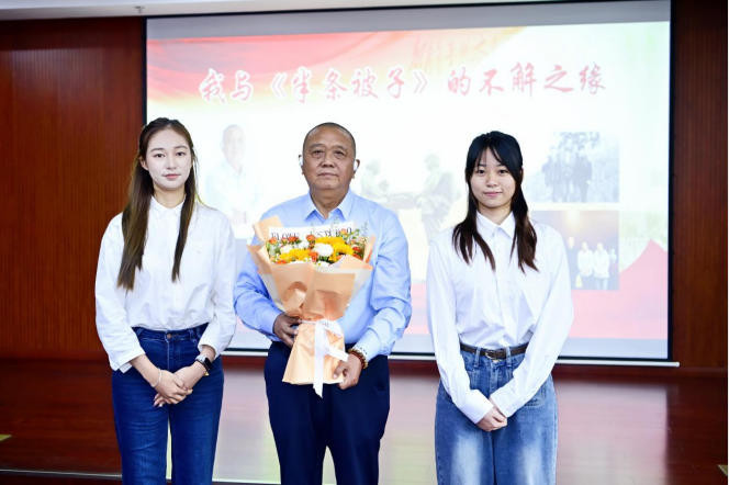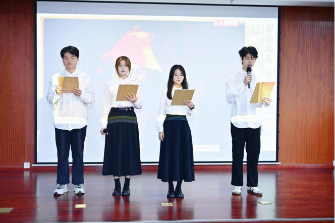 仪式现场,蚌埠市大慈义工协会会员代表深情朗诵《大慈赋》,将协会的公益初心与奉献精神娓娓道来;宣讲团副团长魏诗文以《用长征精神凝聚奋进力量》为题,带领在场者重温长征路上的艰辛与坚守,让长征精神直抵人心;蚌埠学院外国语学院志愿者杨雨晴、张生旺、洪佳琦、郭俊然带来配乐朗诵《英雄陈树湘的故事》,真挚的情感与动人的讲述,让英雄形象愈发鲜活;宣讲团副团长黄洪平分享的《我与半条被子的不解之缘》,以温暖的故事诠释了红军长征坚定的精神追求和无私的为民情怀。学生代表王超慧现场献花,陈驰发表感言,让这份温暖与感动进一步传递。最后,全体人员起立合唱《大慈大爱歌》,悠扬的歌声回荡在现场,将仪式氛围推向高潮。
