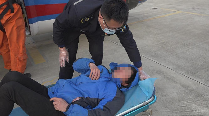 3月20日中午,在距离射阳港大约120海里的正东方向海面上,一艘正在进行捕捞作业的江苏籍渔船上,一个渔民不慎被滚筒绞伤,导致左脚踝骨折,急需送到医院抢救治疗,交通运输部东海救助局随即调派救助直升机展开救援工作。