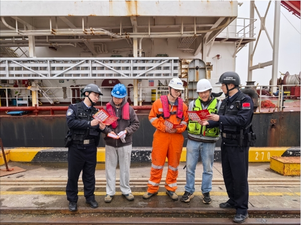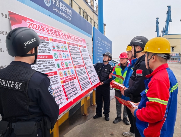 在第十一个全民国家安全教育日到来之际,为深入贯彻总体国家安全观,切实增强全民国家安全意识,全力营造人人知晓关注、支持国家安全的浓厚氛围。4月13日上午 ,盐城出入境边防检查站组织民警走进码头一线开展以“法润国门,国门安全”为主题的国家安全教育宣讲活动。
