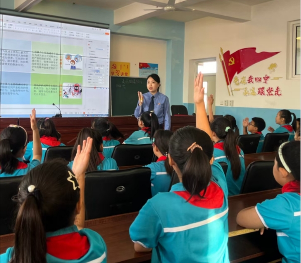 副校长李燕说:“同学们,希望你们把于“老师”的话牢牢记在心里,变成保护自己的超级铠甲,她像一个指南针,帮你在成长路上永远分清对与错、是与非、黑与白,用好今天学到的本领,努力做工农小学最文明、最闪亮的那颗星!”