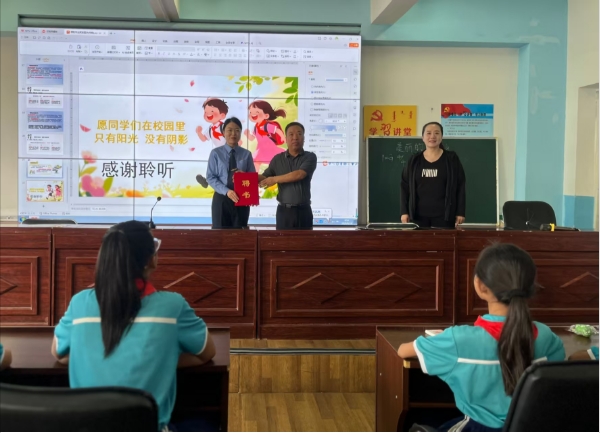临离开校园时,于永赫副校长还不忘叮嘱同学们:“面对校园欺凌、霸凌等行为,我们一定要用智慧与不法分子作斗争,不要硬碰硬,以免伤害到自己,一定要做到不沉默、不硬抗,找准时机向周边的人求助或报警!” (张洪涛)