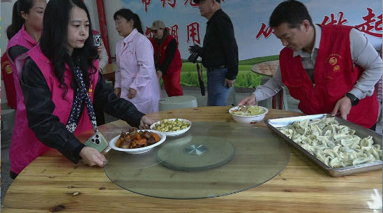 到了吃晚饭的时间,志愿者将精美的菜肴和热气腾腾的水饺端上了桌子,并给老人的碗里不停地夹菜。吃着美味可口的红烧肉,今年已经75岁的孤寡老人王正平告诉笔者,这些志愿者就是我们的亲人,跟我们这些老人是特别的亲,每次过来我们都欢迎,希望他们能经常过来,陪我们聊聊天、说说话,给我们表演表演节目。(通讯员:陈冬平)