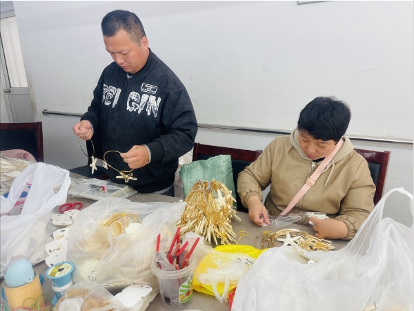 “姜梅,你这串珠耳环配色真好看,再调整下珠子间距就更精致啦!”管理员拿着样品凑近指导。近年来,射阳县临海镇以“赋能型助残”理念破解残疾人就业难题,“康乐残疾人之家”主动对接外地企业,引进技术简单、劳动强度低的手工加工项目,为肢体、智力、精神三类残障人士提供辅助性就业岗位,通过“计件发酬、多劳多得”机制激活自我“造血”能力,更贴心供应免费午餐,实实在在打消他们对生活与就业的顾虑。