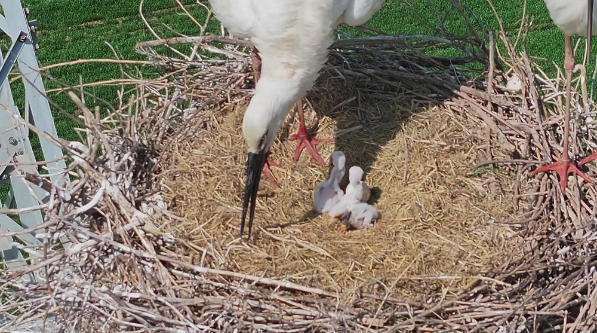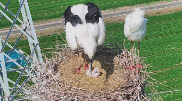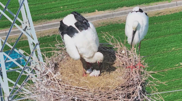 射阳:破壳而出 东方白鹳孵化出三只“马宝宝”