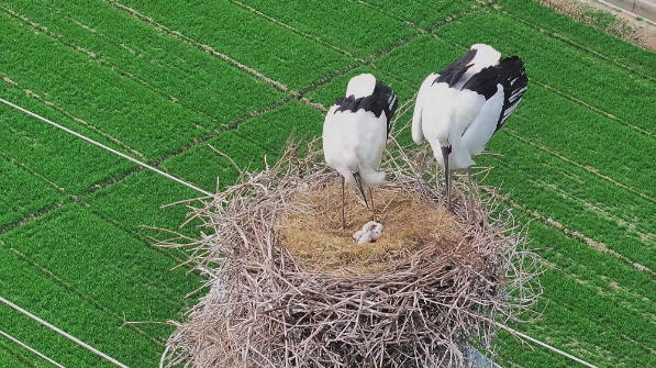 3月19日中午,江苏农垦临海农场员工宋婧通过一个多月的耐心蹲守和精心拍摄,成功用无人机航拍的技术,全程记录下一对国家一级保护的野生东方白鹳从产蛋、孵化到三只“马宝宝”孵化出壳的全过程。
