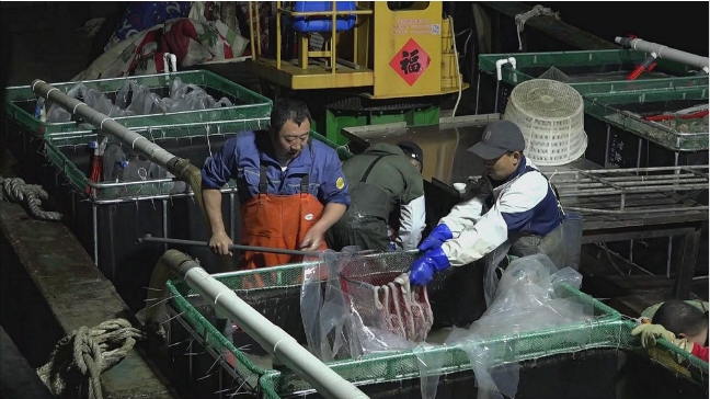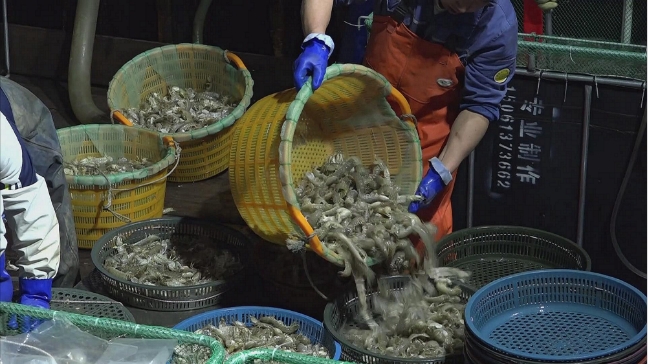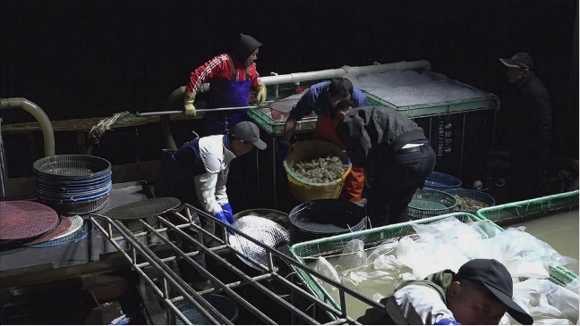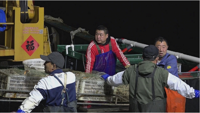 射阳:渔船深夜进港 鲜活时令海鲜赶早进市场