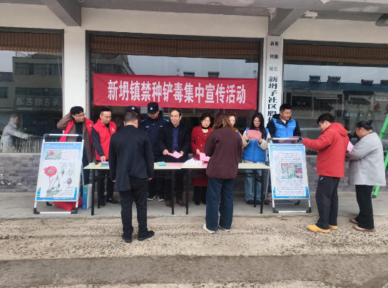 3月16日,该镇又在企业微信中推送了“江苏禁毒”的“春暖花开,这种花千万别碰!”、3月28日在企业微信中推送了“盐城禁毒”的“【禁种铲毒】守好春日净土 共筑无毒家园”的两篇文章。要求全镇所有网格员,通过企业微信推送到所有网格群,并由镇社会治理办公室牵头,联合派出所、司法所、部分网格员及志愿者开展了禁种铲毒集中宣传活动。活动现场,采取悬挂横幅、摆放展板、发放宣传资料等方式,现场向广大人民群众普及毒品原植物的生理特征、生长习性及其危害性,同时向广大人民群众宣传了非法种植毒品原植物的相关处罚。此次集中宣传活动现场共发宣传资料500 余份,接受群众咨询50余人次,让现场群众明白了“罂粟不是花,一株也违法;罂粟不是菜,种了必受害”的法律红线和提高了群众的拒毒意识。