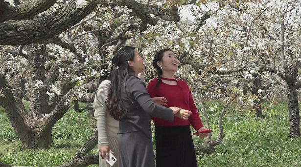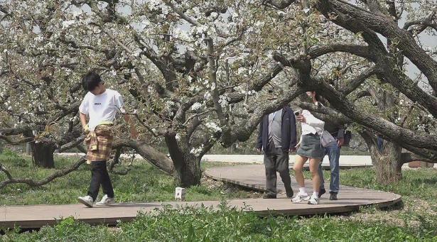 4月5日上午,一走进滨海梨花语景区,就闻到一股淡淡的花香味道,梨花不负春光惊艳绽放。放眼望去,远处是一片白色的花海,形成了“梨花盛开似白雪”的美景,慕名而来的游客徜徉其中踏青寻春,拍照留影,尽情感受着春天的气息。在梨花语景区深处的一片梨树田里,几名游客跟随音乐翩翩起舞,扛着“长枪短炮”、飞行器的摄影家、摄影发烧友穿梭在梨园中,捕捉一幅幅花映人、人衬花的美丽画面。今年已经60多岁、来自连云港的摄影爱好者王启东告诉笔者,这里的景色真的很漂亮,梨树的树龄都是很多年了,现在的梨花正是盛开期,看起来还是特别震撼的,对年轻人、对我们这些年龄大的摄影爱好者是非常好的。