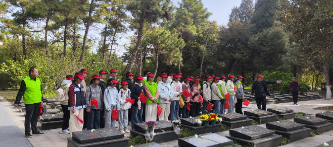 活动中,他们首先来到阜宁铁军广场,志愿者祁进老师带领下,孩子们神情庄重,依次瞻仰烈士纪念碑、祭拜烈士墓园。在庄严肃穆的氛围中,孩子们聆听革命先辈事迹,仿佛穿越至战火纷飞的年代,真切感受先辈们的英勇无畏与奉献精神,爱国主义情怀在心中悄然生根发芽。