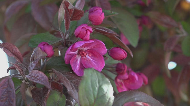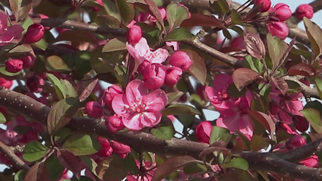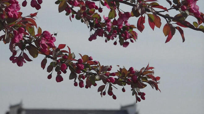 海棠花已悄然绽放,一树一树红艳艳的、热烈似火,片片花瓣重重叠叠,绚丽耀目,你还在等什么?赶快走出家门感受春天的气息吧!(通讯员:陈冬平 王忠民 宋婧)