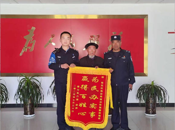 2025年8月5日傍晚,提力瓦力迪老人携子女专程来到加克拉克边境派出所,将一面绣有“为民办实事 赢得百姓心”的锦旗送到邱建策及民辅警团队手中。子女含泪说道:“警官们不是亲人却胜似亲人,从台阶到灯泡,从疏通管道到剪指甲,每件小事都让我们感受到被牵挂!”邱建策动情回应:“老人的笑容就是我们最大的动力,我们会继续把这份关怀坚持下去!”