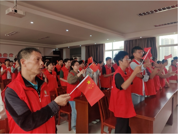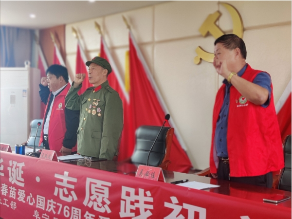金秋十月,秋风送爽。10月1日上午8时30分,在阜城街道城南村委会4楼会场内,暖意漫过窗棂,120名身着红马甲的阜宁县春苗爱心志愿者齐聚一堂,以“红心向党贺华诞,志愿同行传精神”为主题,开展一场浸润初心的爱国主义教育活动,用志愿担当叩响祖国华诞的赞歌。