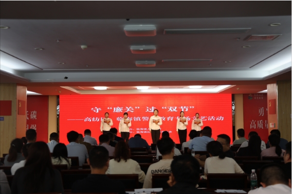 在国庆与中秋双节即将来临之际,射阳县临海镇举办了一场文艺化警示教育专场演出活动,为双节提前打好廉洁自律“预防针”,这既是一场文艺的盛宴,也是一堂生动的廉洁党课,旨在为大家提前敲响廉洁自律的警钟,筑牢节日期间的廉洁防线!‘