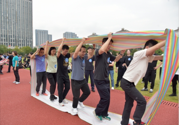 为丰富分局警营文化生活,进一步激发各单位凝聚力战斗力,11月13日,北仑区警察协会与工会联合举行了“科元杯”趣味运动会。来自分局各单位20余个代表队及特邀单位一起参加了跳长绳、车辆滚滚、同舟共济等六个趣味运动项目比赛,整个活动现场轻松活泼又你追我赶,在活动中增强了团队的向心力。经过一个下午激烈与有趣的比赛,最后巡特警大队、刑侦大队与郭巨派出所分获前三名,分局党委委员、政治处主任杨春雨与冠名单位领导等出席仪式并为获奖代表队颁奖。(崔伦君摄影报道)