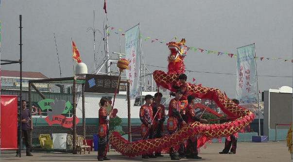 上午9点钟,在黄沙港的大码头广场上,渔民向游客展示了本港捕捞的各种鱼货、虾类和部分贝壳类的海鲜产品,渔民画非遗传承人成广东带着他的精美画作,也来到了活动现场,并与徒弟现场制作渔民画;上午9点半钟,由渔民自发组织的舞龙、舞狮队来到大码头广场,伴随着音乐声的响起,两条金龙和两头雄师上下翻飞,精彩的表演赢得围观村民与游客的阵阵掌声。在织鱼网的比赛中,由六个社区组成的代表队参赛,选手们手中的梭子穿梭自如,渔网线在指尖跳跃,编织出一张张精美的渔网,评委们根据渔网结实程度、编织密度、美观度等多个方面进行综合评分,海星社区代表队获得了第一名,获奖选手们不仅获得了丰厚的奖品,她们精湛的技艺也得到大家的认可和赞赏。在海鲜美味摊位前,聚集了众多前来品味的游客,他们争相品尝油炸带鱼、马鲛鱼,以及鱼圆、虾圆和各种海鲜水饺,鲜美的口感与口味获得游客的称赞。
