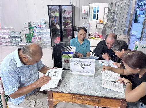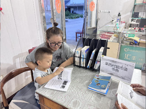 傍晚,渠西村便民超市门口的读书角依旧热闹。这个由红色流动书箱和两张小方桌组成的读书角,整齐摆放着 50 多册种植养殖、健康养生、文学小说类书籍,村民可免费借阅。