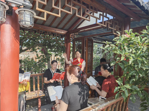 下午 2 点,东兴社区居民任加燕的农家小院里,一场 “小院读书会” 正在葡萄架下开展。涼亭里任加燕拿着《乡村振兴促进法》当 “主讲人”,聚焦第二十三条农村基础设施建设内容,村民们听得认真,不时提出疑问。作为村里的 “文化带头人”,任加燕去年主动把自家小院改造成读书点,自费购置 200 多册农业技术、法律知识、儿童绘本等书籍。“以前村民农闲爱打牌,我想让大家多读书学知识,日子更有奔头。” 她还会按村民需求,邀请镇里干部、教师来当 “客串” 讲师。
