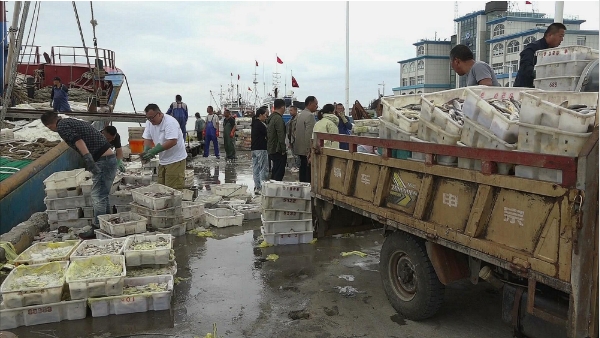 笔者在码头上了解到,由于海洋鱼类出水就会死亡,而渔民为了锁住鱼类的新鲜度,转运上岸的整箱鱼获上都会覆盖一层冰块,并及时过磅称重,随即装车运送到冷库进行分拣,按照大小不同规格分拣后的鱼获,又会迅速装上专用的冷链运输车辆,将这些新鲜的鱼获运送到各地市场,供广大市民挑选品尝。(通讯员:陈冬平 王荣)